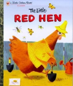 I am thinking these days about publishing, and my current mentor is “The Little Red Hen.” Listen up, girls and boys. You never get too old to have new understandings. I’ll be 83 in a couple of weeks (how did this happen!!??), and so I know whereof I speak. The Little Red Hen is teaching me something important. For those of you too young to know her, she is the star of an old English or Russian folk tale, first published as a “Golden Book” on October 1, 1942, when I was eight years old. I think she has always been important to me, but my clearest memories of her are of reading her story to my children. The Little Red Hen is quite elderly now. No telling when she was born into folklore! More about her later.