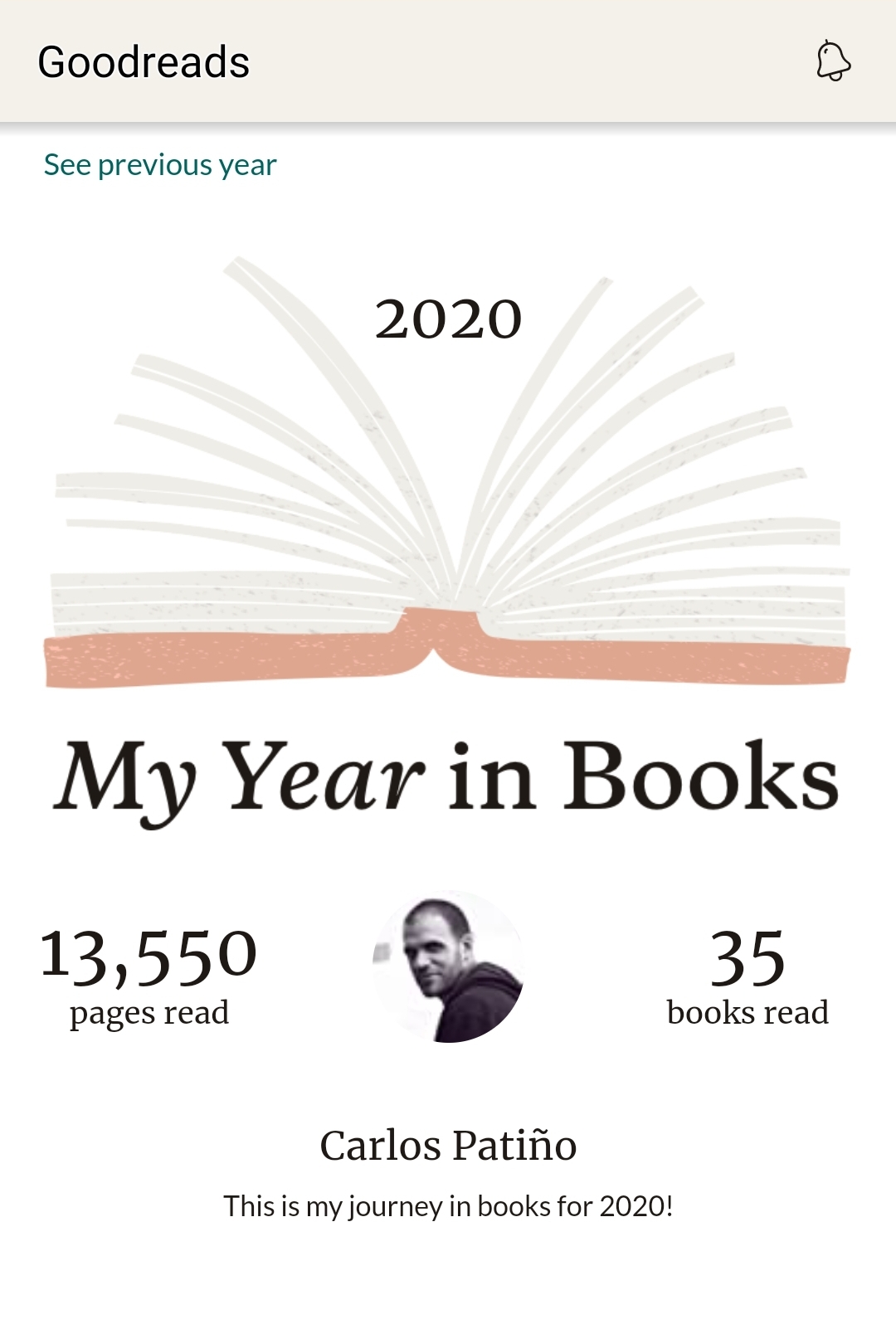 1. Plata quemada; Ricardo Piglia2. Tormenta de espadas; George R. R. Martin3. Festín de cuervos; George R. R. Martin4. Danza de dragones; George R. R. Martin5. La historia de Lisey; Stephen King6. El arte de la guerra; Sun Tzu7. Fahrenheit 451; Ray Bradbury8. La composición de la sal; Magela Baudoin9. Casa negra (Talismán II); Stephen King10. Nuestro mundo muerto; Liliana Colanzi11. Bikini; James Patterson12. Alicia en el país de las maravillas/A través del espejo; Lewis Caroll13. El libro de los grandes filósofos; Varios14. Lolita; Vladimir Nabokov15. Aquello estaba deseando ocurrir; Leonardo Padura16. El talento de Mr. Ripley; Patricia Highsmith17. Rafael Cadenas: Antología 1958 - 1983; Rafael Cadenas18. Horror, volumen 1; Varios19. Historia de la filosofía; Varios20. La historia sin fin; Michael Ende21. Voces de Chernóbil; Svetlana Alexievich22. Un mundo feliz; Aldous Huxley23. Nocturama; Ana Teresa Torres24. Más Platón y menos Prozac; Lou Marinoff25. El nombre de la rosa; Umberto Eco26. La trilogía de Nueva York; Paul Auster27. Tokio Blues; Haruki Murakami28. Sostiene Pereira; Antonio Tabuchi29. La verdad sobre el caso Harry Quebert; Joël Dicker30. Inquieta compañía; Carlos Fuentes31. El filósofo interior; Lou Marinoff - Daisaku Ikeda32. La aventura de pensar; Fernando Savater33. Pyongyang; Guy Delisle34. De qué hablo cuando hablo de escribir; Haruki Murakami35. Los detectives salvajes; Roberto Bolaño