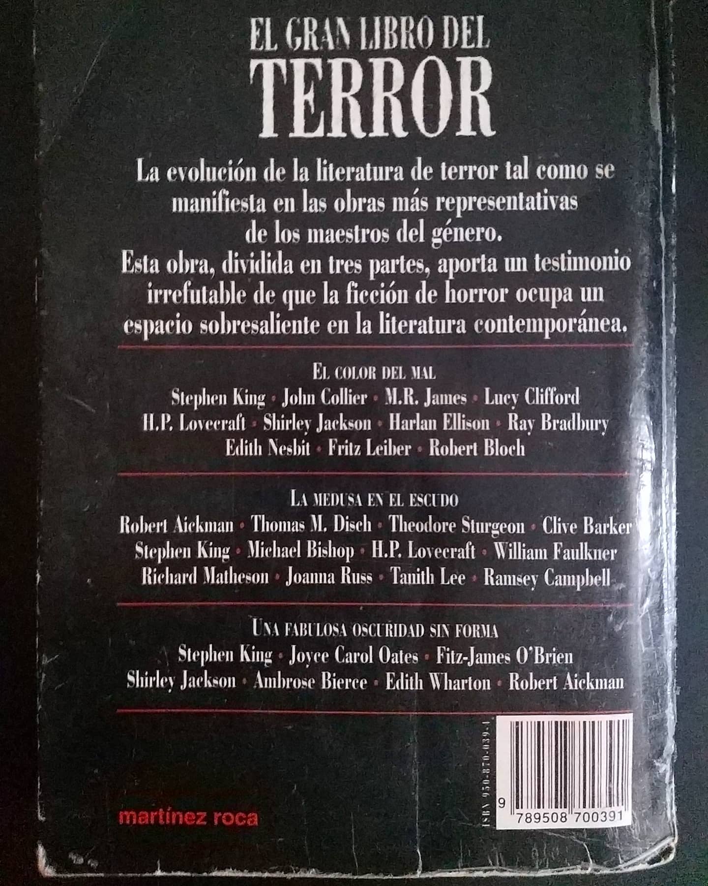 Dicen que octubre es el mes del horror y desempolvé esta antología clásica del género. "El gran libro del terror" me ha acompañado por 25 años, fue un regalo que pedí a mis padres cuando me gradué de bachiller.