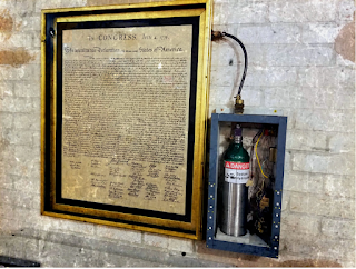 Nearly a year ago, I posted a review of Solve Escape Rooms in Waukesha, Wisconsin. My friends and I played their room “Capone’s Cabin” and really enjoyed it. Just last night, we played their room “14 Floors Below.” “14 Floors” makes no effort to hide that it’s affectionately inspired by National Treasure. As you watch the opening video, a newscast announces that the Declaration of Independence has been stolen from the National Archives, and then an FBI “agent” recruits you, because as it turns out, the thief is your landlord, and the Declaration of Independence is in your apartment building’s basement, but if you don’t retrieve it in sixty minutes, a device will destroy the Declaration.