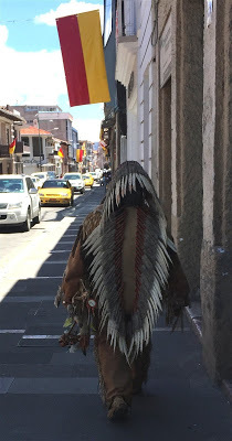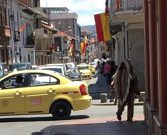 When the stoplights turn red, the show begins for street performers in Cuenca, Ecuador. This performer was switching between the two streets to entertain motorists coming and going.