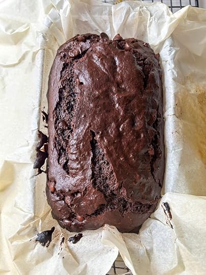 Once it comes out of the oven, you let it cool for as long as you can and then you slice into it and eat a warm piece of chocolate, banana-enriched goodness.