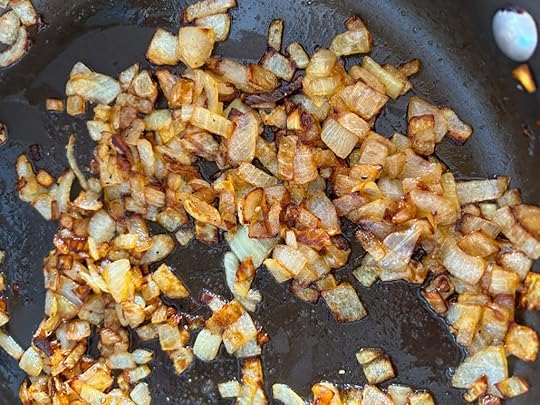 So raw red onion takes me back to my childhood and breakfasts with grandma. But so does quickly caramelized yellow onion, which is different than the low-and-slow caramelization you do for French onion soup.