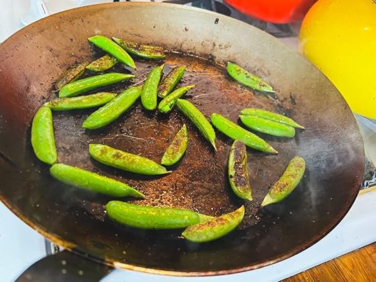 At its most basic level, cooking is playing with fire. And as anyone who was ever a kid knows, lighting things on fire can be fun? But dangerous. But fun? Fast forward to the me of today, and now I have no desire to light things on fire, but sometimes I have the desire to get my vegetables really charred over a hot flame. And now that I’m the proud owner of a carbon steel pan (see here), I decided to put it to work this weekend and make a recipe from Sheela Prakash’s upcoming cookbook, Salad Seasons; a recipe for scorched sugar snap peas with burrata.