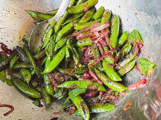 PrintScorched Sugar Snap Peas with BurrataA charry, lemony, minty salad of charred sugar snaps and burrata from Sheela Prakash's upcoming cookbook Salad Seasons.Course SaladCuisine AmericanKeyword charring, onions, sugar snap peasPrep Time 15 minutesCook Time 15 minutesServings 4 peopleIngredients3 tablespoons extra-virgin olive oil, divided, plus more for serving1/2 medium red onion, thinly slicedKosher saltFreshly ground black pepper1 pound sugar snap peas, strings removedJuice of 1 lemon1/4 cup loosely packed chopped fresh mint leaves1 teaspoon ground sumac, plus more for serving1 8-ounce ball burrataFlaky sea salt, for servingInstructionsHeat 2 tablespoons of the olive oil in a large cast-iron or carbon steel (my pick!) skillet over medium-high heat until shimmering. Add the red onion, season with kosher salt and pepper, and cook, stirring occasionally, until softened and lightly browned in spots, 3 to 4 minutes. Transfer to a large bowl.Add the snap peas to the skillet in a single layer and cook, undisturbed, until charred in spots on the bottom, 2 to 4 minutes. Season with salt and several grinds of pepper. Continue to cook, stirring occasionally, until crisp-tender and lightly browned in spots all over, about 2 minutes more. Transfer to the bowl of red onion.Add the remaining 1 tablespoon olive oil, the lemon juice, mint, and sumac to the bowl, then toss to combine. Taste and season with additional salt and pepper, as neededPlace the burrata in the center of a serving platter and spoon the snap pea mixture around the burrata. Drizzle with a little more olive oil and sprinkle with a little more sumac and a few pinches of flaky sea salt.NotesI think it’s nice to take the burrata out of the refrigerator when you start prepping the vegetables, so it’s not refrigerator cold. Also: if your skillet develops a layer of gunk after all of the charring, add water off the heat while it’s still hot (it’ll sizzle and spurt) and use a wooden spoon to scrape up any bits that are sticking to the bottom. Makes it way easier to clean later.The post Scorched Sugar Snap Peas with Burrata appeared first on The Amateur Gourmet.