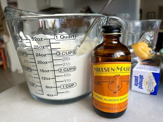 There are a few tricks about this almond cake I’ve learned over the years. The main one has to do with lightness. Because of the almond paste, this cake has a tendency to be dense, but there are a few tricks to make it fluff up. Trick #1: Listen to the recipe when it says to sift the flour before measuring. This ensures that (a) you’re not using too much flour and (b) that the flour you are using is aerated.