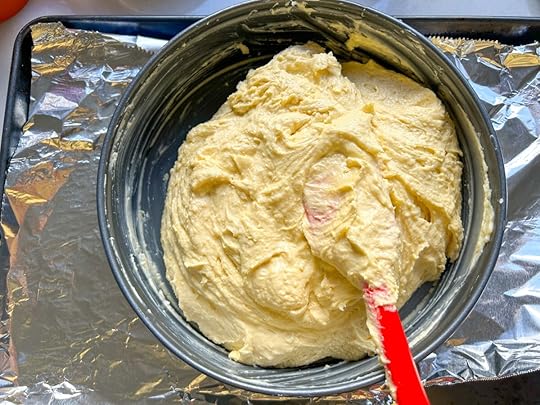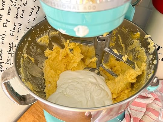 Trick #2: Really make sure your butter is at room temperature before starting. That’ll help it incorporate better with the sugar and will allow more air to get worked in. Trick #3: Make sure to mix the baking soda with the sour cream before you add it to the batter. Like a science experiment in middle school, the two react together and the sour cream will double in volume. All that activity is your friend in terms of making a light cake.