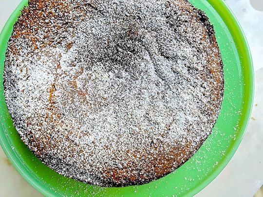 Some cakes need icing, some cakes need whipped cream. This cake is marvelous on its own, but it does need a dusting of powdered sugar just to give it some necessary pizzazz. Sift it on right before serving… it has a tendency to get absorbed into the cake. You could also sprinkle on some raspberries if you want to, that might look nice.