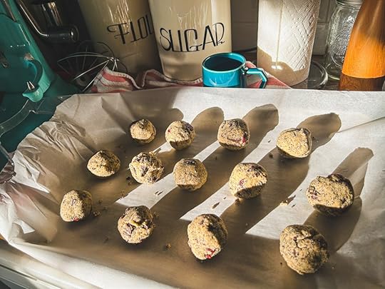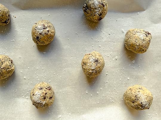 See the end-of-day light hitting these balls of cookie dough? That’s because it was the end-of-the-day and I wouldn’t be making the cookies until Day 2. That’s because you have to refrigerate the batter overnight.