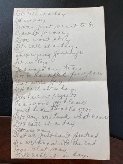 Still, to be twenty and in love and to think (with all your heart) that you are going to marry someone, and then to have it all fall apart. It must have been horrible. Reading her poems (like the photo above), I feel like she was somewhat resigned to the fact that it wasn't going to work out, but I'm sure it was still difficult to face that reality. In the 30s, I think it was quite common (and rather expected) that you meet, fall in love, and marry very young, if for no other reason than to reduce the family's financial burden. In Punk, I describe the straps that Paul was in, and his family--this is true of the real Paul as well, according to my grandmother's diary. I believe some of the reason it didn't work out with them was because they didn't have the means to move forward and be together as an independent married couple. To that point, here is another poem my aunt found, written in my grandmother's hand, but clearly describing Paul's sentiments: