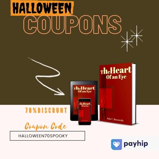 To celebrate this Holiday you have as a gift this new coupon code to use for the hole day! Get this amazing book deal for 'The Heart Of An Eye' and have it for this Halloween great new treating.