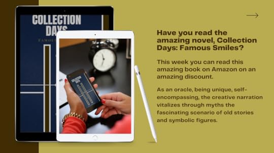 Order Your Copy on 24th and 25th of January.And Share The Book Link With Other Friends To Connect It With New People. If you haven't read it, you can check the link bellow and please leave a review, I will appreciate it. >> ,https://www.amazon.com/dp/B087SKKFMD Until the end of this amazing opportunity, the 2020 new released novel, Collection Days: Famous Smiles can be reached in all Amazon Stores for a special sale price and free in Kindle Unlimited.Get It Here:UK: https://www.amazon.co.uk/dp/B087SKKFMD US: https://www.amazon.com/dp/B087SKKFMD CA: https://www.amazon.com.ca/dp/B087SKKFMD The inspirational novel will vitalize your perspective by symbols, myths and scenes through the essential ways of thinking. As author, I will really appreciate your fresh good opinions to connect with new readers.Download today on a special price or free in KU more copies and share them with your friends: