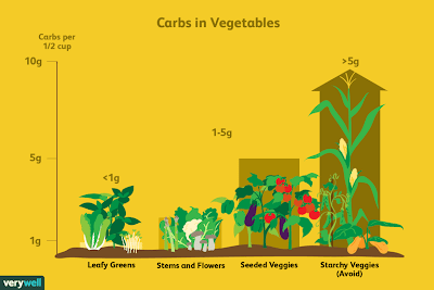 This chart shows which veggies we should be eating if we're watching our carbs. I found this chart on Verywell and even though I'm no longer 'counting carbs' I'm still watching them with my Weight Watcher's diet.