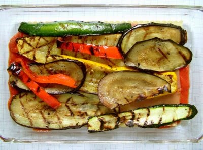 2. The simplest way to grill vegetables is to brush them with oil, then rub them with minced garlic and fresh herbs. Cook vegetables over direct heat alongside meat, poultry, or fish on an oiled grill. (This sounds like another good use for the basket grill like the one you cook fish in. I've also run across some throw away pans that have holes in the bottom. They would be perfect for grilling vegetables but I think I would spray them with non-stick 1st so the vegetables can be turned easily while cooking.)