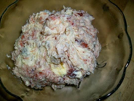 Bread spreads are so easy to make and so tasty. The one you're looking at is Strawberry Pecan. It's made by blending 1/2 cup of softened butter or margarine, 1/4 cup finely chopped pecans and 1/4 cup of strawberry preserves. This is so good on a hot biscuit or just spread over a piece of toast. This can be made with any flavor of jam, jelly or preserve. It can even be made with sugar free preserves to help control the sugar intake. But the spreads don't stop there.