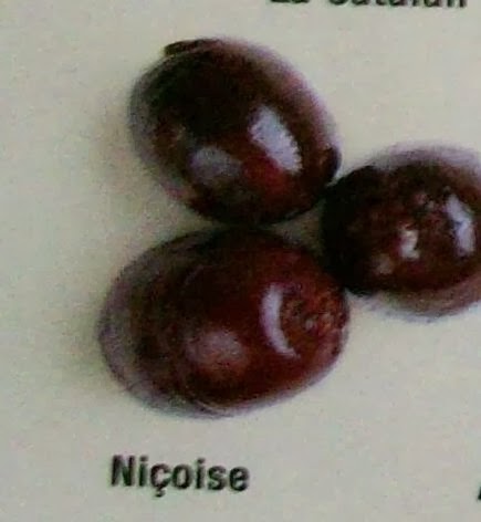 Nicoise is a small, brownish-purple, brine-cured olive that's fruity and juicy, but not oily.