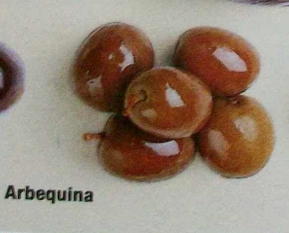 Arbequina is a green, brine-cured olive with a slightly bitter taste. Cerignalo's are huge, green or jet-black brine-cured olives with a lemon-apple flavor. This one is difficult to pit.