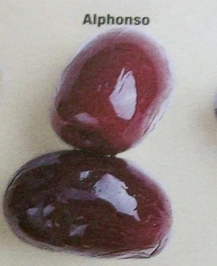 Alphonso is a huge, deep-purple olive from Chili with soft, meaty flesh and a slightly bitter, sour taste.