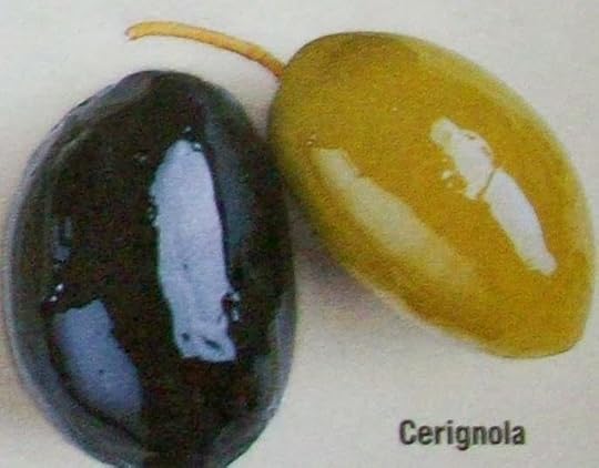 Cerignalo's are huge, green or jet-black brine-cured olives with a lemon-apple flavor. This one is difficult to pit.