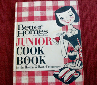 Junior Cook Book was copyright 1955. This version is a revised 1st print 1963. It measures 10 1/4 x 7 1/4 x 1/4 (approx.) and contains 79 pages. On a scale of 1 - 10 with 10 being 'like new' I rate this book a 4. It has been used and does show some wear but is still in very useable condition. Priced at $3.00 plus shipping.