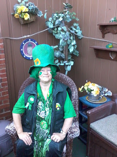 Many of you have heard me talk about my best friend Dusty. Remember, she is the one who has cancer that has spread to her bones and spine? Well, there is something that most of you don't know about this beautiful lady. She is not letting it get her down! Today, 3/15/13, Dusty decided to give those going through their chemo a St. Patty's day treat. She dressed up in her green, gathered her green cupcakes and cookies and pranced down to the Levine Cancer Center and entertained those that were lucky enough to have their treatment today. This is truly one remarkable lady that has the spirit of God in her and it shows through everything she says and does. I'm so fortunate to know her and to have the honor of calling her my best friend.