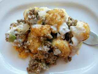 This is the perfect example in the nutritional changes that are made simply by just changing a couple of ingredients. Changing from the ground beef to ground turkey, using the lowfat cheese and shredded potatoes instead of tater tots doesn't damage the taste of this dish at all.