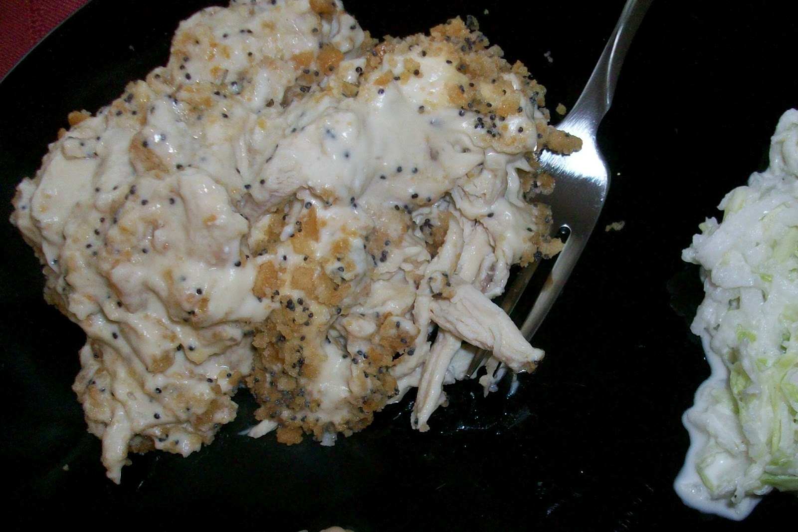 It's called Poppy Seed Chicken and this one is a perfect, easy to make, delicious casserole that you must try! I made this and served it to my drop-in company and they loved it enough to ask for some to take home. It's that good! So here it is.