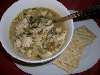 The original recipe for this soup called for 2 Tbsp. of flour added to the onions for thickening and 3 Tbsp. of sherry. I omitted both and added the butter to my onions and added celery which wasn't called for in the original recipe. I also left out the carrots simply because I don't like cooked carrots. For my chicken I used 2 plump split chicken breasts using this for my broth. This version gave me a pot full of chicken and rice with just enough broth to make it perfect. Due to the seasoning mix included with the rice, no salt was needed. You could add a little garlic and maybe a touch of sage if you want but I found it perfect as it is for my taste buds. For the full recipe visit Martha's Recipe Cabinet.