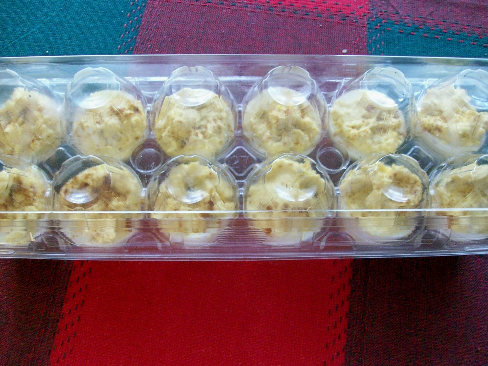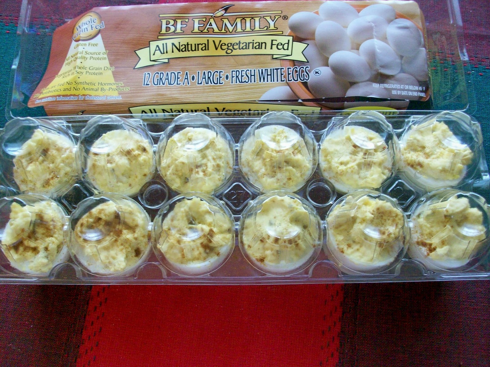 This carton gives you the room to carry 12 egg halves without crushing or smashing plus it gives you the perfect storage container. When ready to serve, simply take a spoon and scoop your egg half out of its compartment, please it on a serving dish and toss the carton, or wash it for use another time. The eggs themselves are delicious. The hens are fed no synthetic hormones, no antibiotics and no animal by-products. The carton - it's just an added treat.