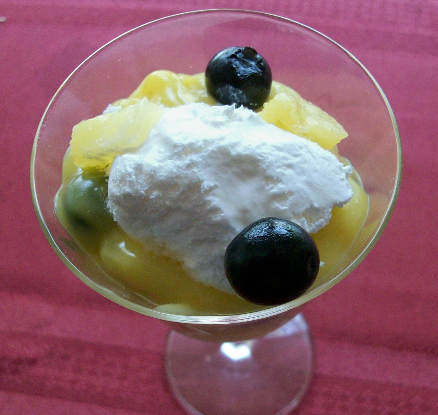 This is another one that I'll be playing with using other soda/cola flavors. With the 7-Up you actually taste the flavor of the drink which compliments the blueberries and pineapple. You can always change the fruit, change the soda flavor, for diabetics use sugar free pudding mix and sugar free soda. This is not just delicious it's also a pretty dish.