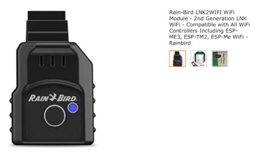 All I needed was the Rain-Bird LNK2WIFI WiFi Module – 2nd Generation LNK WiFi – Compatible with All WiFi Controllers Including ESP-ME3, ESP-TM2, ESP-Me WiFi.