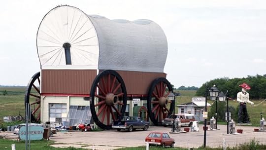 I don’t want to forget the names of towns. Welcome to Friend, Nebraska. Have you been to Montezuma? How about Happy? In another life, if it were a very long one, we would take the exit in Milford and check out the giant covered wagon, spend a little time at the Plainsman museum. Strategic refueling helps. If you stop, make it count. Yesterday we refueled in Waco, Nebraska, at the scuzziest gas station I’ve ever set foot in, with a pothole-filled drive I thought I might bust an axle driving over. And where was Waco? No town in sight. It must have been down that neglected two-lane one way or the other. There was no telling, and I didn’t ask.