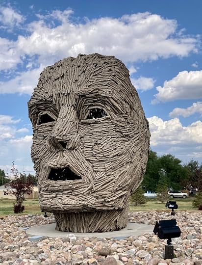 Once in a while, I pick up my phone and record a detail. I take a note, voice to text. “The blond cows look like rocks lying in the fields,” I say, and it’s saved for future contemplation. But at 81 mph, even on a long straightaway, I don’t like touching my phone. It’s dangerous. Coming soon, I hope, an app for that. We need an iThink app that records your thoughts. Thought to text. You think it, the app writes it. I could be journaling as I drive, capturing every passing curiosity. A town called Funk, a town called Wynot. It would be messy, I know. Thoughts are chaotic and multi-directional. You wouldn’t want the app to record everything (“let not light see my deep and black desires”). You would need commands. This thought, not that one. “Hey, Siri, I’m thinking…” A command like that and bingo! Thought capture. “Hey Siri, I thinking the stick man face I saw in Laramie.”