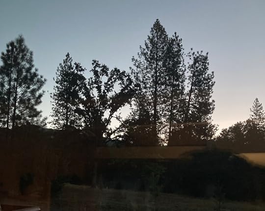 For 7-10 days we’re staying with our son and his wife in the Sierra Nevada mountains, at their 800-tree apple orchard, where we have come to visit and to pick apples. Yesterday morning Tizi and I picked 600 pounds of Yarlington Mills. It was work. It was good old-fashioned honest manual labor, and I was muscle weary and dead tired when we finished. (Long days of more work lie ahead.) I may have been tired, but I was done sleeping by 4:30 this morning anyway. I’m cursed with the habit of waking up preternaturally early (to use a fancy word I have always loved—I honestly don’t get that “preter” prefix, but I’ll take it). To get up and wander about someone’s house, even a close relative’s, at that hour feels anti-social. The clank of a spoon is a gong, the flush of a toilet is a roaring waterfall, a cough or sneeze is a car crash.