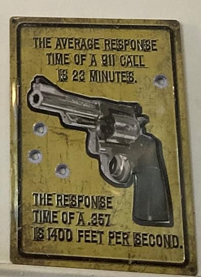 Attached to a gas station and a small general store, Steve’s is full of locals. They belly up to tables, eat and gab and laugh. The atmosphere is friendly, companionable. Even an amatuer user of the FACS can read happiness. Except for the signs and posters hanging on the walls. Whereas Happy Burger’s decor elicits delight with faded photos of entertainment icons (will you get a load of Wayne Newton’s hair!), the theme in Steve’s is all Second Amendment. It’s unsettling.