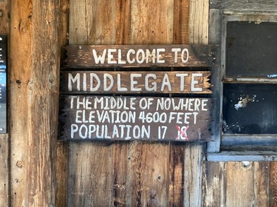 At Middlegate we stop at an inviting hovel. Out here any sign of civilization is inviting. She peels and eats a peach we brought from Michigan. I take a few pictures. We’re good again.