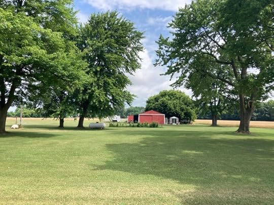 I’ve got barns on my mind. I’m driving across Illinois on 88 West. This is corn country. On this bright sunny afternoon, there’s a lot of amber waving going on. The fields run from the edge of the road to the horizon. Amidst clusters of trees far into the countryside, barns. Farms with enough shade to keep a farm family cool in the middle of summer. It’s 130 miles to the Iowa border, where we’ll see more barns. Here we pass what seems like hundreds of them.
