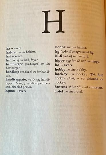 I got to wondering about H words. When we got home I pulled my Larouse English-Italian dictionary off the shelf and turned to the H words. It’s an old paperback edition, with 45,000 translations. In the H’s, here’s what I saw:
