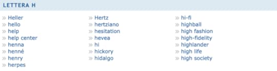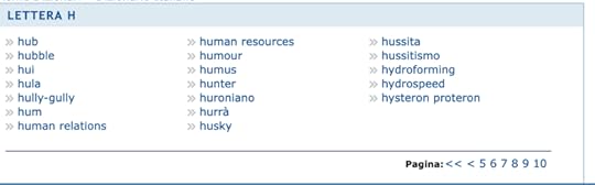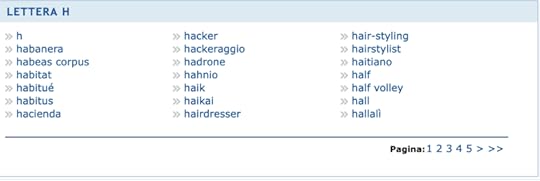 Mostly words imported from English. I notice “hackeraggio,” a wacky italianization, which is kind of like hackerage, the act of hacking. More H words: