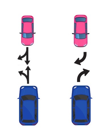 There are two awkward outcomes: a head-on collision, a kiss on the lips (or more likely a face smash), or, both cars complete their turns with an inevitable fender-bender. You both feel foolish. But there’s no doubt about who’s at fault.