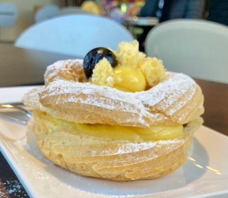 I know that gluttony is one of the seven deadly sins–it’s worse, I think, than ostentation–but somehow the Italians sidestep that difficulty. They can do Lent and indulge at the same time. The bakery up the street, called La Baguette, more pasticiaria than bakery, calls to us, offers sweet delights. Last year as St. Joseph’s day approached–Italy’s Father’s Day on March 19– we discovered zeppole up at La Baguette. Picture a round pastry, a tawny hockey puck, a cream puff pumped full of light yellow pastry cream, dusted with powdered sugar, topped with a dark cherry. I wish they made them the size of a frisbee.