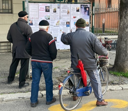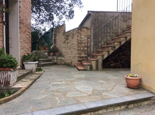 His house is on the route of one of our walks, up the hill behind our building. An uphill walk smacks of penance, so we go for it. On the gate in front of his house Checco attaches copies of poems he has printed, both in dialect and in Italian. I can sort of read the Italian.