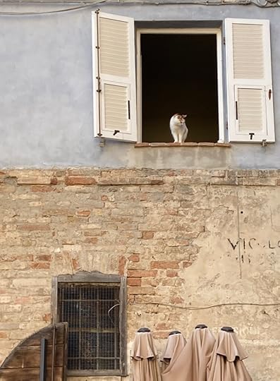 Hard rain is in the forecast all day, so I go with Nickie to Globo and buy a pair of over-the-ankle boots, wondering, as I pay the bill, if this will be the last pair of shoes I buy over here. (There are moments one becomes conscious of one’s age. Yesterday, standing in front of the fruit and vegetable stand, up in the piazza, on one side of me, I would have once called her an old lady, wearing a plastic bonnet over her hair-do; on the other side, I would have once called him an old man, with a hat and cane. Both, I realize now, are my contemporaries.)