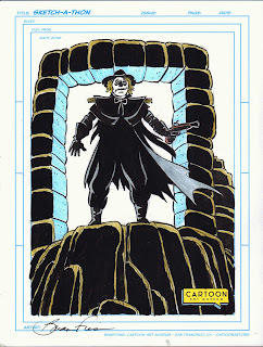 Ink and color pencil on cardstock. I'm embarrassed to admit how much time I spend on these; let's just say that CAM is getting a substantial donation of my time as well as the commissioner's cash.