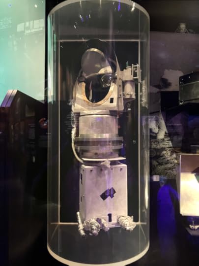 ...Where it resides in the National Air and Space Museum so I could take this photo of it! Notice the rectangular bites taken out of it--by NASA, not metal-eating Moon monsters.I just find something very human and romantic about casting a note in a bottle into the ocean and then tracking it down years later to see how it's doing. I think it's one of the coolest things people have done in space.