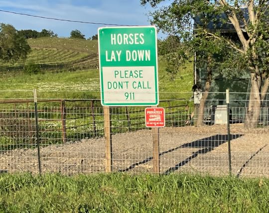 There are many stories contained in this sign: The concerned citizens who think they're seeing a veterinary emergency. The 911 operators tired of taking calls about dead horses. The stable hands tired of having sheriff’s deputies roll up to check on the dead horses. The old equestrians rolling their eyes at city slickers who think horses only sleep standing up. A lot had to happen before the stable decided to pay for and put up a sign.