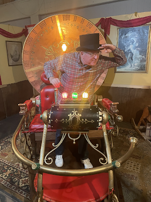 I try not to post photos of my daughters without their OK, but they don't mind if I make myself look ridiculous. So here I am piloting a time machine (in my opinion, THE BEST time machine!).