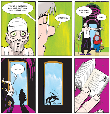 An example of how I digitally merged actual watercolors with line art in Last Mechanical Monster. Both the green wall and the blue sky are real watercolor. I like the look.December 23, 2023