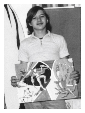 Me around age 14, holding a tempera painting I did of Dr. Strange. I didn't have much juvenilia even before my 2017 wildfire; now I don't have anything but a few photos and scans that survived on my computer backup drive.I've just discovered a thing going around where artists and cartoonists talk about how they got their start. I don't usually bite at "things going around" but this one intrigued me, so: