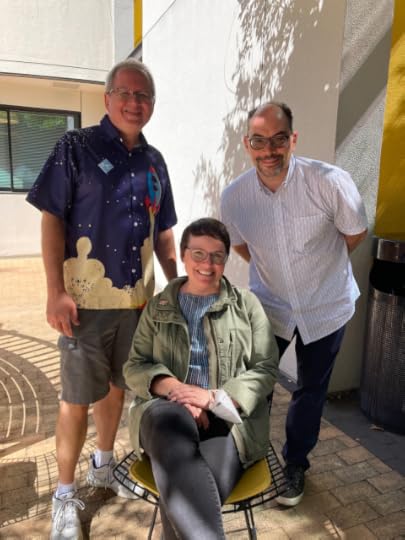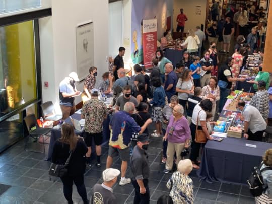 I'm not posting pictures of the taco party because I think everyone there understood it wasn't a public event. Instead, here's a picture I took of a bottle of the museum's house "Flying Ace" chardonnay, bottled by Jeannie, which I got signed by cartoonists Raina Telgemeier, Stephan Pastis, Paige Braddock, Bryan Stone, Lex Fajardo, Thien Pham, Reza Farazmand, Nathan Hale, Thomas Yeates, and Maia Kobabe. What I like best about these events is the "world's colliding" aspect of them--cartoonists whom you wouldn't expect to have much in common stylistically or thematically can always talk shop. You may recall I had a similar souvenir from the museum's 15th anniversary event that did not survive my fire, so this is a special memento for me.
